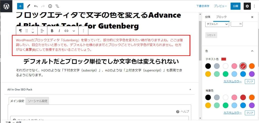 インラインで文字色を変えるAdvanced Rich Text Tools for Gutenberg