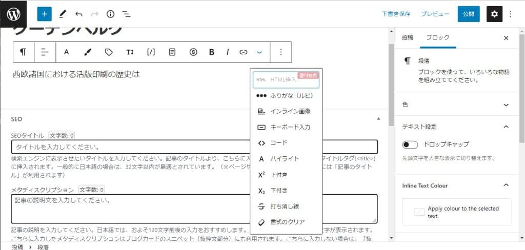 Advanced Rich Text Tools for Gutenberg は、使いやすくシンプルなプラグインです。設定と使い方も簡単、入れておくととても便利です。このプラグインの主な機能は